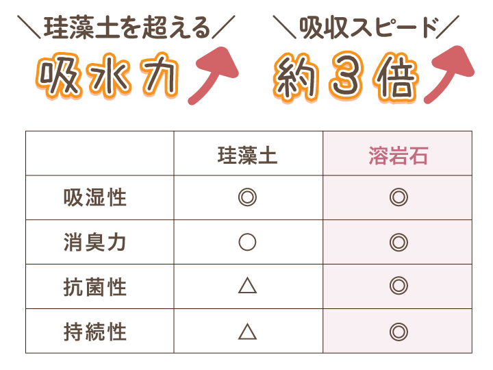 - 消臭力:溶岩石の方が高い