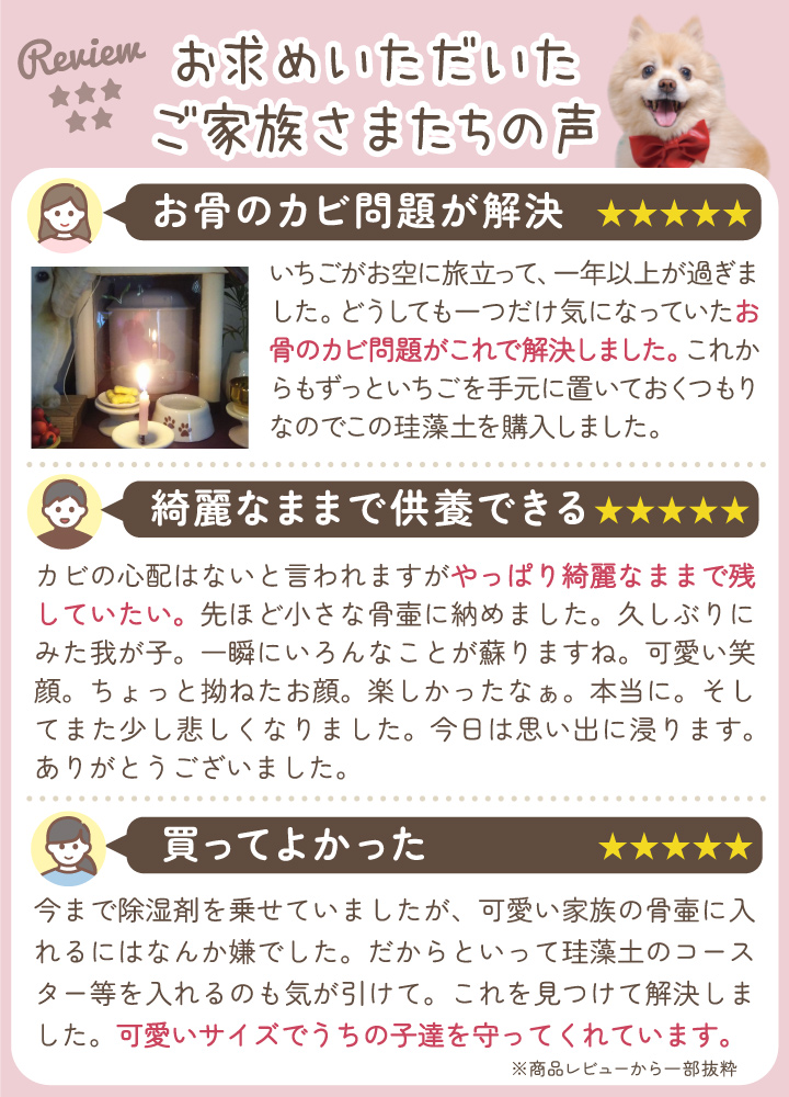 「お骨の湿気が気になっていて、除湿剤などを入れるのも気が引けていました。