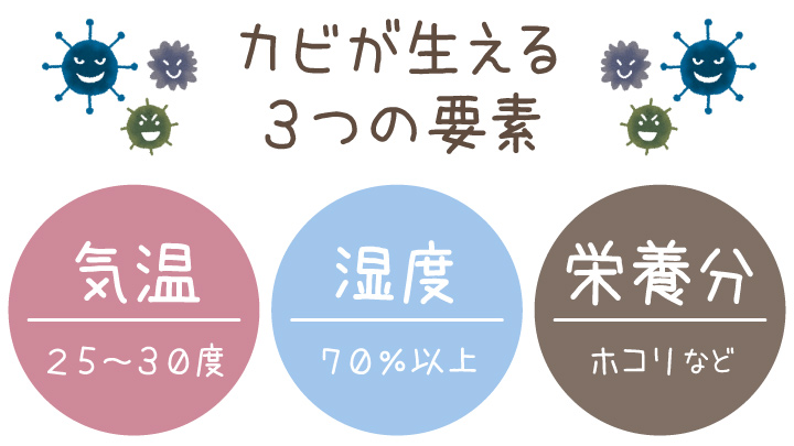 カビは主に、次の3つの条件で発生します。